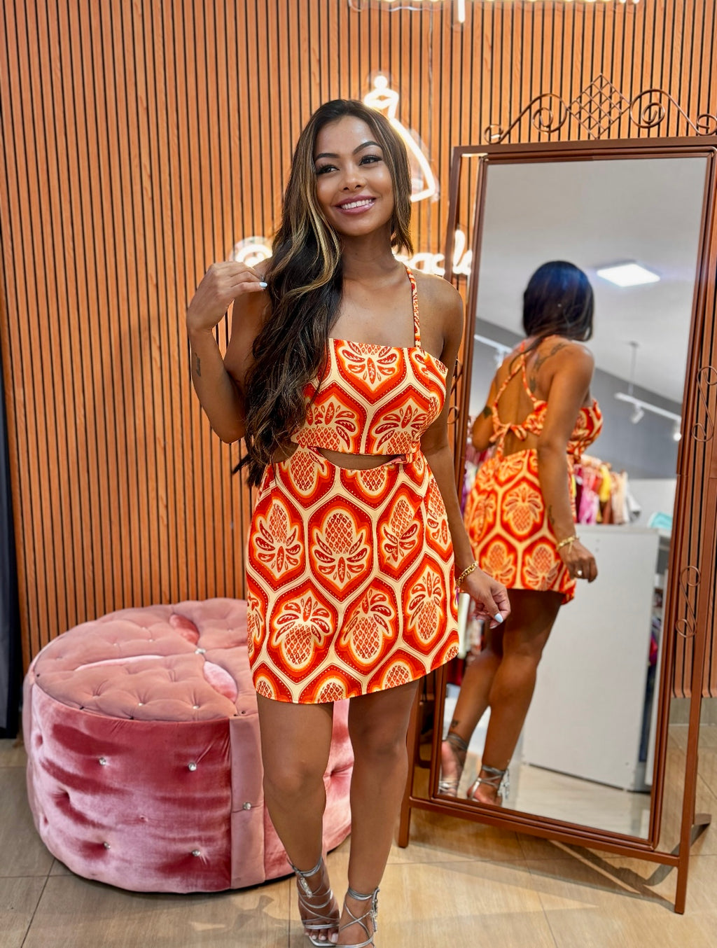 Macaquinho estampado - Possui amarração nas costas - Possui bojo - Detalhes em brilho